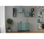 Небольшой настенный шкаф для гостиной Сириния. Открытый шкаф с полками выполнен в сочетании серого и голубого цветов.