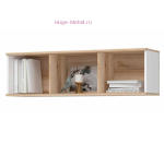 Недорогая настенная полка длиной 120 см подходит для ТВ тумбы, стола и комода из серии мебели Юкки. Полка состоит из двух закрытых и одной открытой секции.
