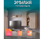 Гостиный модуль Эмилия ГМ-12 представляет собой комплект из настенных шкафов и полки. Гостиный модуль можно дополнить ТВ тумбой или комодом из серии мебели Эмилия. Длина шкафов для гостиной 213 см, в закрытых шкафах по две вместительные полки.