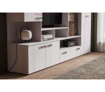 Недорогая стенка в гостиную в светлым цвете с лаконичным дизайном. Гостиная с платяным шкафом и закрытым шкафом для книг или посуды. Стенка впишется в любой интерьер и станет идеальным дополнением вашей квартиры, а матовая стеклостворка с пескоструйным рисунком внесет неповторимую изюминку. Гарнитур выпускается в трех цветовых решениях, имеет вместительный шкаф, оснащенный выдвижной евроштангой, где ваши вещи будут всегда в идеальном состоянии, так же удобные и вместительные ящики и разнообразные полки помогут разместить множество вещей, поддерживая идеальный порядок в комнате.