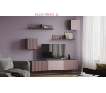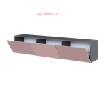 ТВ тумба 190 см для гостиной Сириния розового цвета с гладкими и рельефными фасадами. Тумба с тремя отделениями внутри без ручек на фасадах, роль ручек выполняют торцы створок. Парящую тумбу можно дополнить опорами для напольной установки, опоры продаются отдельно. Тумбу для телевизора можно дополнить навесными шкафами и полками из той же серии мебели.