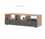 Недорогая тумба для телевизора с двумя выдвижными ящиками и открытыми полками. Выдвижные ящики на шариковых направляющих полного выдвижения. Тумбу можно дополнить настенной полкой, пеналами или шкафом.