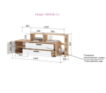 Недорогая тумба под ТВ с двумя выдвижными ящиками, закрытыми и открытыми полками. Тумба шириной 140 см выполнена в сочетании белого цвета и светлого дерева. Тумбу для телевизора можно дополнить комодом и шкафами Санса.