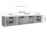 Недорогая подвесная тумба для телевизора шириной 220 см. Тумбу Парус-12 можно дополнительно укомплектовать опорами, которые продаются отдельно.