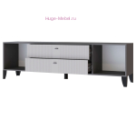 Современная ТВ тумба шириной 180 см с двумя выдвижными ящиками. ТВ тумба с матовыми фасадами МДФ светло серого цвета, корпус в цвете графит. За двумя распашными дверцами тумбы пространство для хранения без полок.