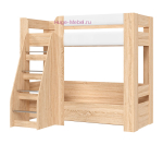 Двухъярусная детская кровать с удобной лесенкой и бортиком на втором ярусе. Кровать выполнена сочетании светлого оттенка дерева дуб сонома и белого глянца. Двухъярусные кровати подходят для небольших детских комнат, когда две отдельные кровати поставить затруднительно, а кровати с выдвижным спальным местом не обеспечивают должный комфорт для двух детей. Размер спального места 80х190 см подходит для детей разного возраста.