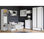 2-створчатый шкаф с полками и штангой для одежды. Шкаф для детской комнаты Асцелла выпускается со скошенным фасадом без лицевой фурнитуры. Удобный выдвижной ящик на шариковых направляющих. Шкаф выполнен в белом матовом цвете и декорирован серыми вставками.