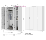- 4-х створчатый шкаф с полками по бокам и со штангой для одежды на плечиках в центральной части, (ШхВхГ) 1600х2100х500 мм;