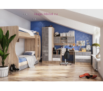 Набор мебели для детской комнаты с двухъярусной кроватью в современном стиле лофт. Детская мебель Колибри модульная и мебельный гарнитур можно менять по своему усмотрению. Недорогая мебель для детей Колибри от фабрики ТЭКС отличается функциональностью и вниманием к деталям.