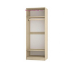 - В комплект входят: 2-х ярусная кровать, платяной шкаф, стол с навесной полкой и комод.