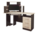 Недорогой угловой компьютерный стол впишется в любой интерьер квартиры и офиса. Стол имеет три выдвижных ящика на роликовых направляющих, удобные полки под диски и различные мелочи, полку под принтер и место под системный блок. А самое главное в небольшой квартире стол можно использовать как письменный, столешница на 1300 позволит удобно разместится на рабочем месте.