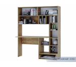 Недорогой письменный стол с надстройкой и пеналом поможет организовать удобное рабочее место в небольшой комнате. Письменный стол с открытыми и закрытыми полками и выдвижным ящиком выполнен в современном сочетании фактуры бетона и дерева.