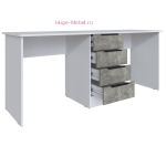 Письменный стол шириной 180 см с 4 выдвижными ящиками. Стол визуально разделен тумбой с выдвижными ящиками на две части. Стол в сочетании белого и светло-серого цвета входит в серию мебели Мадрид и сочетается со стеллажами, шкафами и навесными полками из той же серии, что удобно для создания комплекта мебели.