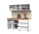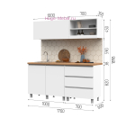 Недорогая кухня Хелен белого цвета длиной 1.7 метра представляет собой готовый к монтажу комплект кухонной мебели. В стоимость кухонного гарнитура входит 2 столешницы (100 и 70 см) в цвете "Дуб вотан" толщиной 38 мм. В комплект входят 4 кухонных шкафа, размером 70 и 100 см.