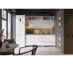 Недорогая кухня Хелен белого цвета длиной 2 метра представляет собой готовый к монтажу комплект кухонной мебели. В стоимость кухонного гарнитура входит цельная столешница "Дуб вотан" толщиной 38 мм. В комплект входят 6 кухонных шкафов, размеры  40, 80 и 80 см.