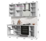 Недорогая модульная кухня длиной 2.2 метра с высокими шкафами. Кухонный гарнитур в серо-белой гамме с качественными матовыми фасадами МДФ. Кухонный гарнитур может быть изменен в соответствии с размерами вашей кухни.