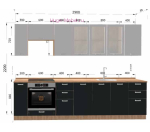 Современная и недорогая кухня длиной 2.9 метра со шкафом для встраиваемой плиты. Кухонный гарнитур модульный и размеры кухни могут быть изменены, для составления проекта обращайтесь к нашим менеджерам.