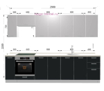 Современная и недорогая кухня длиной 290 см со шкафом для встраиваемой плиты. Кухонный гарнитур модульный и размеры кухни могут быть изменены. Все модули можно менять местами, предусмотреть место для посудомоечной машины или пенал для встраиваемой техники. Для составления проекта обращайтесь к нашим менеджерам.