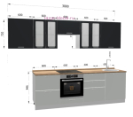 - Ширина кухни: 300 см (включая верхний шкаф над столешницей, ширина по нижним шкафам 240 см);