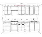 - Ширина кухни по стене: 300 см с учетом шкафа под вытяжку;