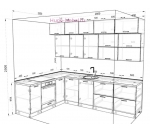 - Высота кухни с учетом третьего ряда шкафов: 250 см;