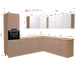 Недорогая угловая кухня с пеналом для духового шкафа с фасадами МДФ бежевого цвета. Кухня Призма модульная и её размеры, высоту шкафов и их наполнение можно изменить. Кухни Призма выпускаются в 4 цветах: белом, мокко (плотный бежевый), сером (асфальт) и бриз (зелено-морской) - цвет кухни можно изменить без увеличения стоимости.