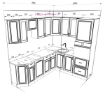- Размер кухни по стене 200х250 мм, сборка универсальная на правую или левую сторону;
