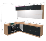 - В комплект кухонного гарнитура входят шкафы верхние и нижние с корпусом из ЛДСП и фасадами МДФ, ручки, петли, ножки. Стеновые панели, столешница и мойка приобретаются отдельно и в стоимость не входят.