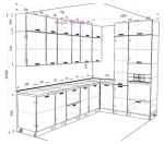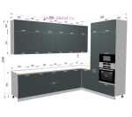 - Высота кухни: 250 см (высота пенала 214 см + высота антресольного шкафа 36 см);