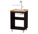 Напольный кухонный шкаф под мойку для модульной кухни Плейона в цвете венге с фасадом дуб делано. Нижний кухонный модуль шириной 60 см для установки мойки не комплектуется полками.