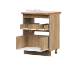 В комплектацию входит: корпус, фасад, ручки, фурнитура для сборки, пластиковые регулируемые ножки, нижний цоколь белого цвета из ЛДСП.