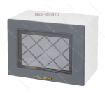 Горизонтальный кухонный стеклянный шкаф для модульной кухни Модена с фасадом Стекло + МДФ в цвете дуб серый. Размеры шкафа: