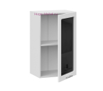 Кухонный шкаф верхний со стеклом для модульной кухни Катрин с фасадом Стекло + МДФ в цвете софт вайт. Размеры шкафа:
