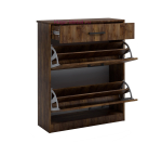 Недорогая узкая обувница с двумя отсеками для хранения обуви и выдвижным ящиком. Обувница в темном цвете подходит для небольших квартир. Качественная фурнитура и шариковые направляющие выдвижного отсека.