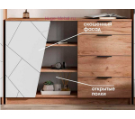 Комод шириной 140 см с 4 вместительными выдвижными ящиками, открытыми и закрытыми полками. Комод в теплом оттенке дерева с ассиметричной створкой из МДФ белого цвета подходит для гостиной, спальни и прихожей. Комод сочетается с другой мебелью орегон в том же цвете.
