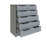 Высокий комод шириной 82 см с 6 ящиками в светлом сером цвете с накладными черными ручками. Высота комода 97,8 см, пять равных по высоте выдвижных отсеков, верхний ящик двойной. Комод входит в серию мебели Мадрид, подходит для любого помещения и сочетается со шкафами, тумбами, стеллажами в том же цвете. Комоды Мадрид выпускаются в нескольких цветах и размерах, оснащены современной фурнитурой и механизмом полного выдвижения.