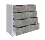 Недорогой комод с 4 ящиками Мадрид в сочетании белого и светло-серого цвета ателье. Комод шириной 85 см со стильными накладными ручками черного цвета подходит для спальни, прихожей, гостиной и детской и сочетается со всеми предметами серии Мадрид. Комоды выпускаются в нескольких цветах, которые можно комбинировать в одном помещении. Комод оснащен современными шариковыми направляющими полного выдвижения, которые обеспечивают тихое открывание ящиков и увеличивают срок службы комода.