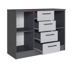 Недорогой и вместительный комод шириной 110 см в сером цвете. Комод с двумя дверцами и 4 выдвижными ящиками хорошо сочетается со спальней Вегас и со шкафами фабрики ТЭКС.