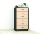 Высокий комод Катрин 4 подойдёт для небольшой комнаты. Узкий комод шириной всего 62 см очень вместительный благодаря шести выдвижным ящикам. Выдвижные ящики установлены на роликовых направляющих. Максимальная распределенная нагрузка для выдвижных ящиков на дно 8-10 кг. Недорогие комоды мебельной фабрики ТЭКС отличает лаконичный дизайн и классические цвета исполнения, благодаря чему комод легко вписать в любой современный интерьер.