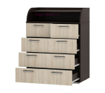 - ширина комода – 800 мм и для облегчения открывания нижние выдвижные ящики оснащены одновременно двумя ручками геометрической формы;