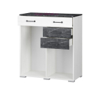 Высокий вместительный комод с тремя выдвижными ящиками и двумя створками. Комод Теана выполнен в светлом оттенке дерева с вставками из МДФ с рисунком мрамор. Комод входит в серию мебели для спальни Теана.
