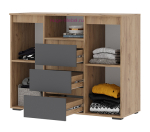 Большой комод с тремя выдвижными ящиками и двумя дверцами из серии мебели Хелен. Удобный комод длиной 120 см выпускается в трех цветах. Комод оснащен шариковыми направляющими полного выдвижения. Мебель Хелен представлена большим количеством комодов и шкафов. Сквозная коллекция мебели выпускается для гостиных, спален, детских, прихожих в трёх современных цветах: серый с деревом, белый с деревом и полностью белый.