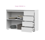 Большой белый комод 1.5 метра. Комод с 4 ящиками с двумя створками, ящики с шариковыми направляющими полного выдвижения. Комод из серии мебели Хелен выпускается в двух цветах: белый и сочетание белого и дуба крафт.