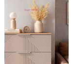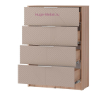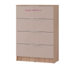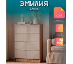 Высокий комод с 4 выдвижными ящиками Эмилия выполнен в спокойных оттенках натуральных оттенках. Недорогой комод с оригинальной фрезеровкой, качественными фасадами МДФ и ящиками полного выдвижения подходит для спальни и гостиной. Ширина комода 80 см, а высота 113 см.