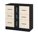 Недорогой комод для спальни Эрика с тремя выдвижными ящиками. Комод декорирован стеклом с рисунком. Невысокий комод Эрика можно купить отдельно или в составе спального гарнитура.