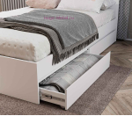 Двуспальная кровать белого цвета с двумя выдвижными ящиками. Кровать со спальным местом 160х200 продается в комплекте с надежным реечным основанием под матрас. Кровати Симпл выпускаются в двух цветах: графитовом сером и белом.