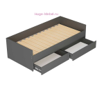 Кровать трансформер Симпл графит удобна в использовании в небольших помещениях: при необходимости её можно раздвинуть и увеличить спальное место. Кровать оснащена двумя выдвижными ящиками для белья. Спальное место: 924*2000 мм, в разложенном виде: 1800*2000 мм - таким образом из односпальной кровать трансформируется в двуспальную. Основание для кровати в комплекте - ламели для раздвижных кроватей.