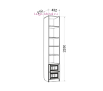 Недорогой пенал с открытыми полками и двумя выдвижными ящиками из коллекции мебели для спальни и деткой Богуслава.
