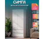 Недорогой 2-створчатый шкаф белого цвета из серии "Симпл" ШК-03. Шкаф отличается лаконичный дизайн и качественная фурнитура: дверцы открываются нажатием, ящики полного выдвижения с интегрированным срезом вместо ручек. Внутри шкафа два одинаковых по ширине отделения: отсек со штангой и отсек с четырьмя полками, внизу два вместительных ящика.