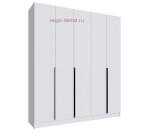 Пятистворчатый белый шкаф шириной 2 метра с тремя выдвижными ящиками внутри. Шкаф без зеркал внутри разделен на три отсека: два отделения со штангами для одежды, длина каждой штанги 77 см, и отсек с 4 полками под которыми расположено 3 выдвижных ящика. Отделения со штангами для одежды на плечиках дополнительно укомплектованы двумя полками шириной 77 см. Ширина полок в центральной части шкафа 38,2 см. Ширина каждой из пяти дверей шкафа 39,6 см, двери с накладными ручками черного цвета. Шкафы Мадрид высотой 230 см может быть дополнен антресолью высотой 30 или 40 см, антресоли покупаются отдельно.